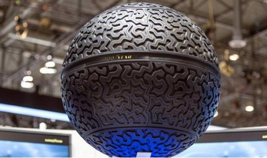 这款球形概念胎采用了仿生设计,灵感竟然是源于大自然!有没有觉得它的胎面有点熟悉感呢?没错!它的胎面是模仿了脑珊瑚的形状。
