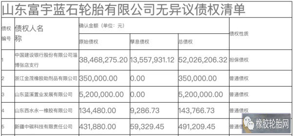 债权清单显示,债权人除了银行外,还包括多家轮胎设备供应商、原材料供应商、轮胎经销商,还有永一橡胶、正泰橡塑,以及已经破产的好友轮胎。