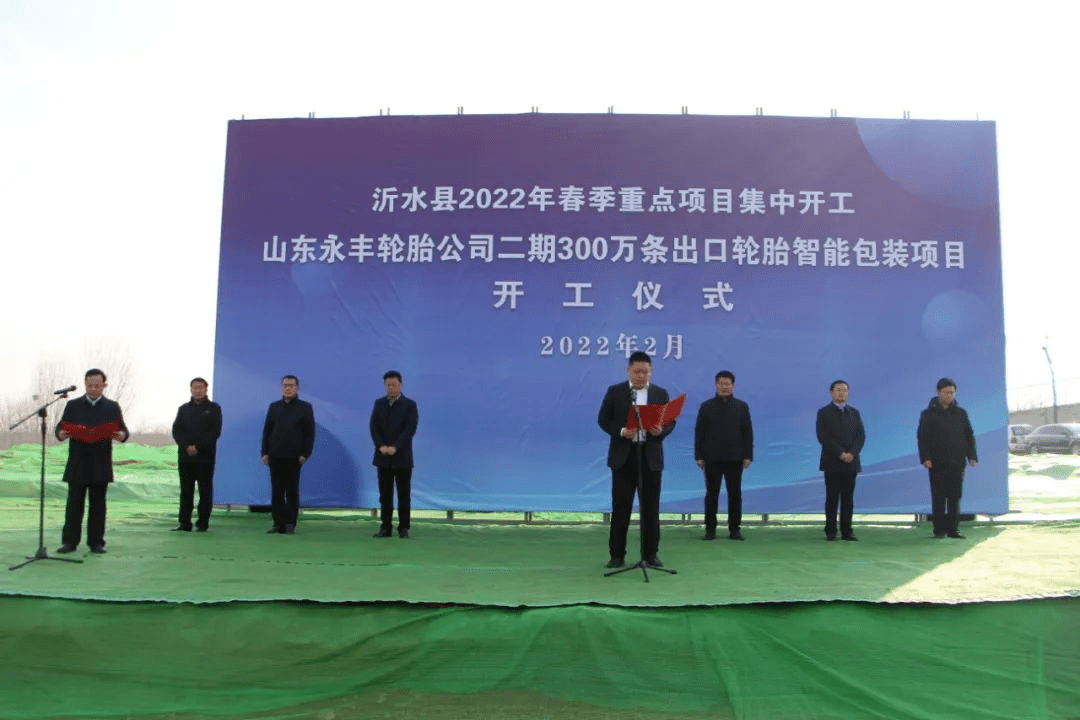 沂水县政府副县长韩庆出席仪式并讲话,他希望,永丰轮胎公司要抢抓当前施工有利时机,早发力、快发力,争分夺秒赶进度,守住底线保安全,严谨细致抓质量,全力以赴推动项目早竣工、早投产、早见效。