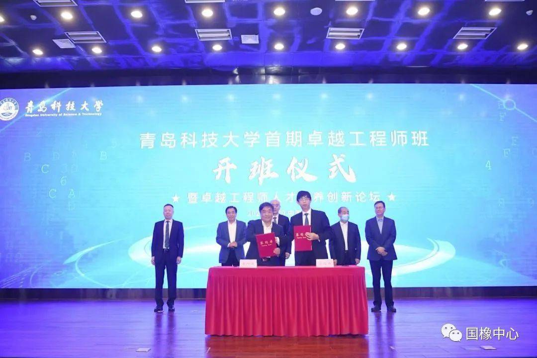 仪式上,青岛科技大学分别与国橡中心等4家平台及企业签订首期卓越工程师校企联合培养协议。