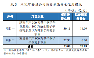 其中,拟使用14.09亿元用于越南年产 300 万条半钢子午线轮胎、100 万条全钢子午线轮胎及5万吨非公路轮胎项目。