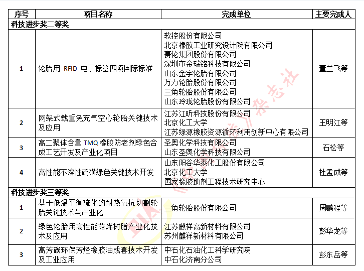 2022年度石化联合会科学技术奖拟授奖名单(橡胶轮胎行业)