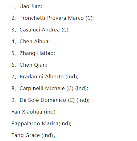 按照马可波罗国际与Camfin SpA的议案,董事会成员包括15人。除了上述12人之外,其余三人有可能来自第二份候选人名单。