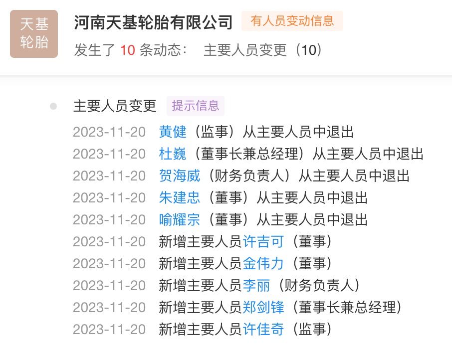 目前,天基轮胎的两大股东仍然是上海烜卓供应链管理有限公司和浙江天铁实业股份有限公司,没有发生变更。