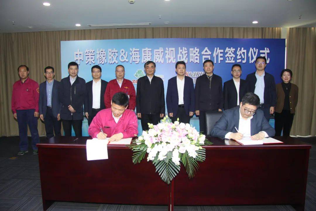 海康威视董事长陈宗年、高级副总经理徐习明带队,共赴中策橡胶签署协议。中策橡胶党委书记、董事长、总经理沈金荣,高级副总经理张利民,副总经理蒋志强,副总经理、董事会秘书沈昊昱等,出席签约仪式。