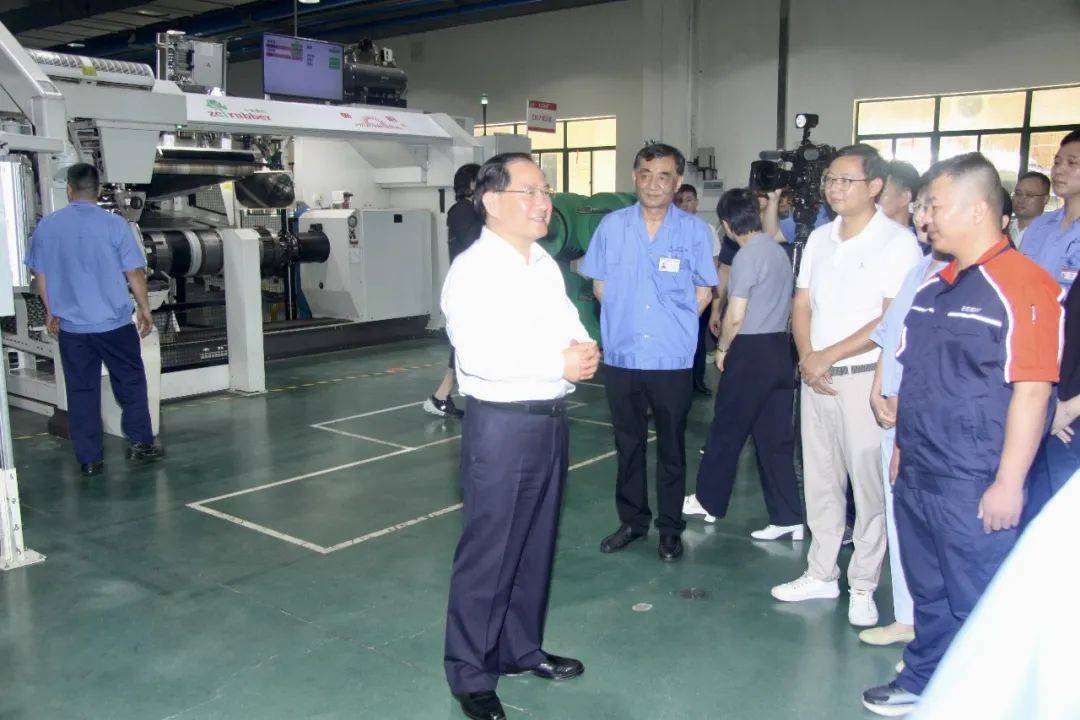 在中策橡胶一楼展厅,集团公司董事长、总经理、党委书记沈金荣从生产经营、品牌建设、数字化转型、绿色可持续发展、融入新发展格局等方面介绍了企业发展情况。金壮龙对中策橡胶取得的成绩给予了高度的肯定,特别是中策橡胶的未来工厂,契合了总书记提出的发展新质生产力促进制造业构筑新竞争优势的精神,是数字化转型的经典案例。