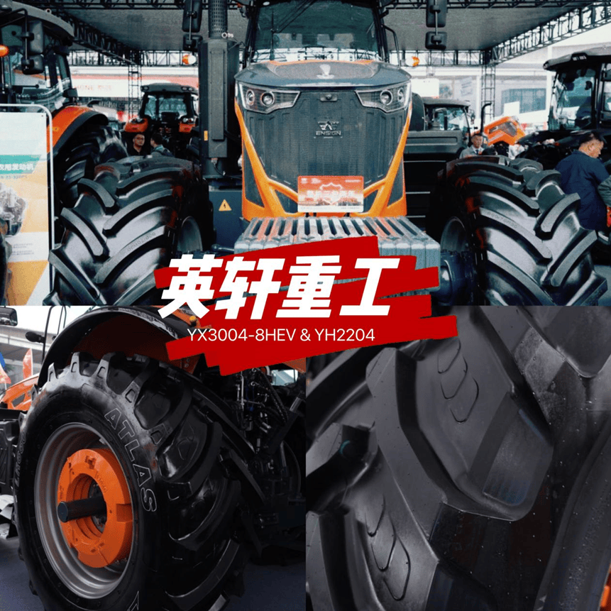 英轩重工:YX3004-8HEV和全新升级YH2204两款机型,搭载阿特拉斯农业子午胎大师系列新花纹产品。