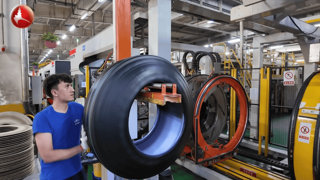 车间内,其年产120万条轮胎生产线,正满负荷运转。