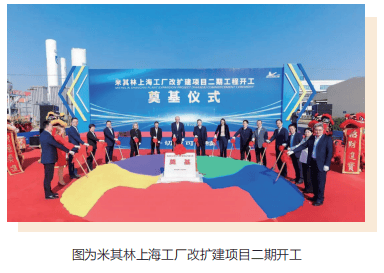 上海的米其林基地,一期改扩建项目已竣工验收,年产能由700 万条提升至850万条。2023年11月20日奠基的二期工程一阶段正在加紧施工,2026年底完工后,工厂高性能子午线轿车轮胎的年产能增加100 万条至950 万条,将打造成为超级灵活、绿色、智能的未来工厂。沈阳工厂、上海工厂都在建设“零碳工厂”,以响应集团“领行2030战略”中关于降低碳排放的目标:在生产和能源领域,2030年的碳排放比2010年下降50%,在2050年,生产、能源及运输领域全面实现碳中和。