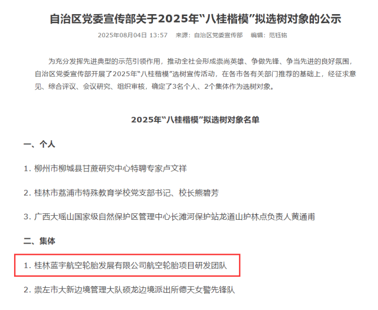 包括桂林蓝宇航空轮胎发展有限公司航空轮胎项目研发团队。