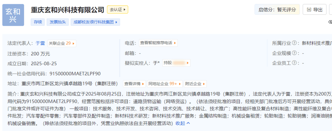 其具体注册地址,位于重庆两江新区龙兴镇卓越路19号。