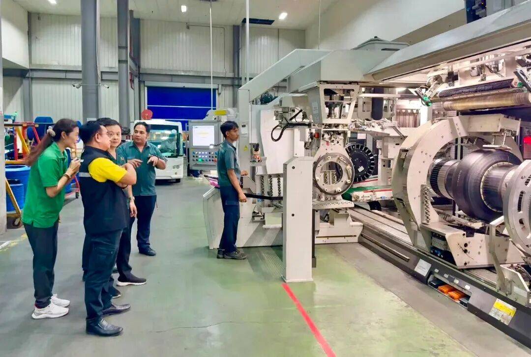 参观过程中,Mr.Wira Nanthaseth对中策泰国在原材料选择、绿色环保生产工艺以及先进自动化设备的应用表现出浓厚兴趣,并就工业绿色化与数字化转型等话题,与中策泰国技术团队进行了交流。