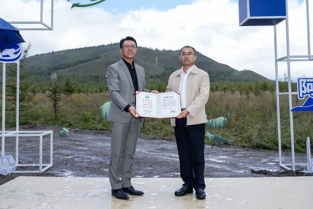 启动仪式上,中国绿化基金会向米其林,颁发捐赠证书。