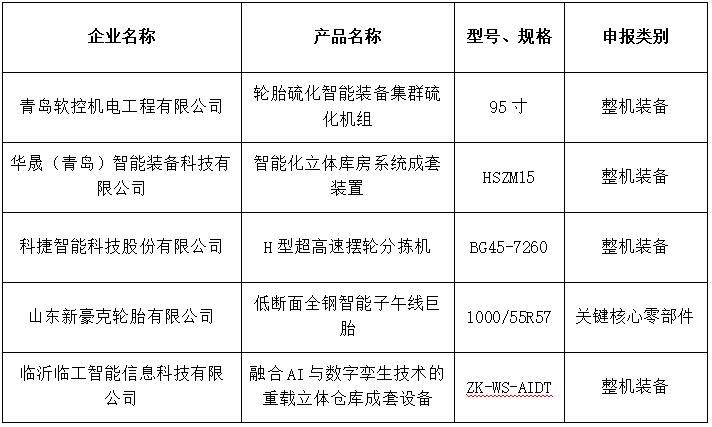 包括轮胎、轮胎硫化智能装备、智能化立体库、分拣设备等在内的多个相关产品及装备,入选名单。