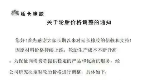 前后已有约60家轮胎企业,发布价格调整通知,涨幅在2%-3%之间。