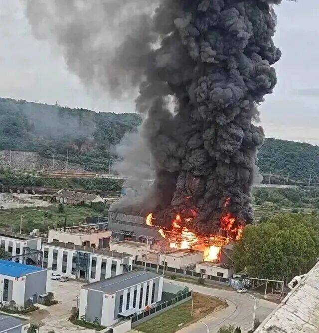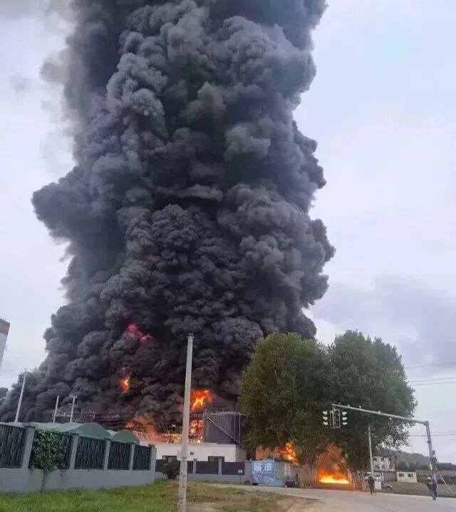 事故现场,火势燃烧非常猛烈,浓烟滚滚,火光冲天。