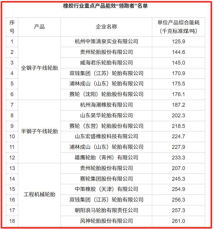 涉及的产品有全钢子午线轮胎、半钢子午线轮胎、工程机械轮胎,这些轮胎企业在节能降耗、提升能源利用效率等方面表现突出,起到了行业标杆的引领作用。例如,赛轮集团股份有限公司的工程机械轮胎、有道轮胎有限公司的全钢子午线轮胎、雄鹰轮胎的半钢子午线轮胎等产品,均凭借卓越的能效表现获评能效 “领跑者”。