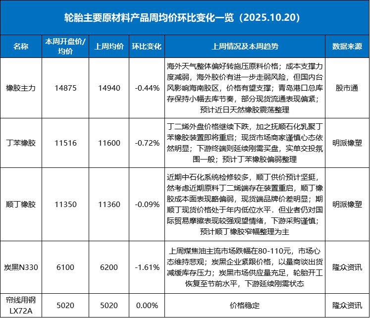 轮胎原材料价格全线下跌