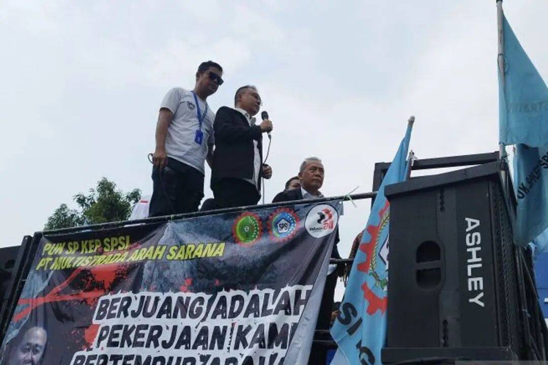 工人们聚集在工厂外围抗议示威,导致附近的交通中断。