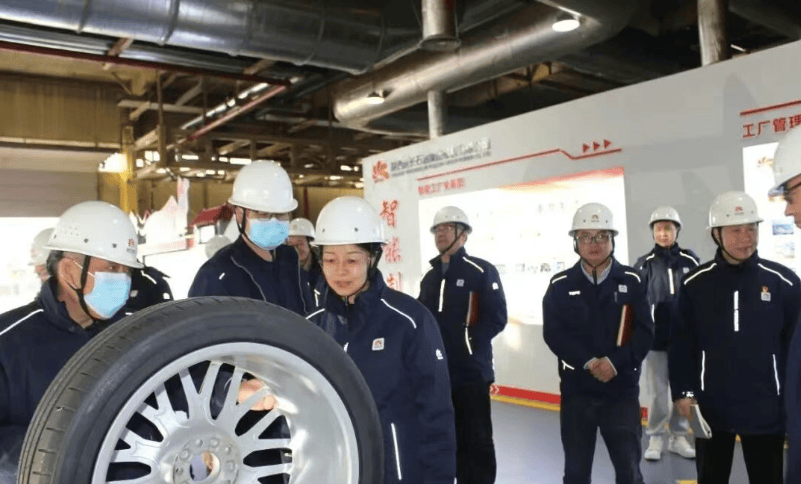 观摩阶段,观摩团赴延长橡胶公司半钢生产车间,观摩两大项目实施成效。