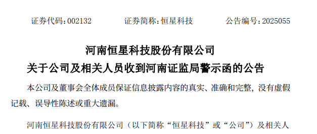 《警示函》指出,恒星科技存在薪酬事项审议,以及内幕信息管理不规范问题。